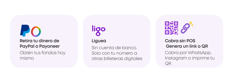 - Compras con tarjeta Ligo o QR tanto físicas como virtuales.